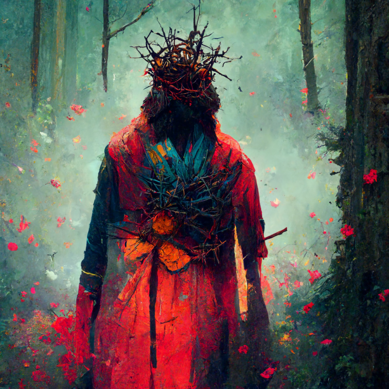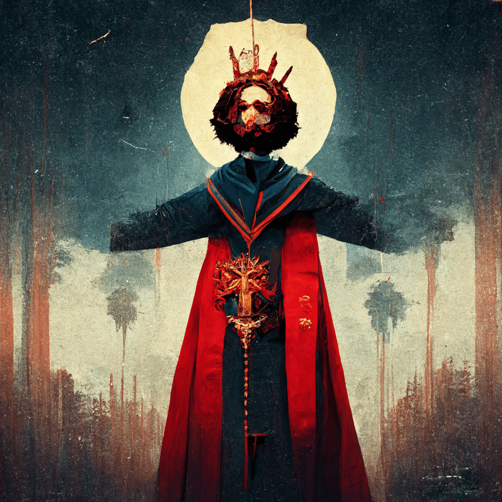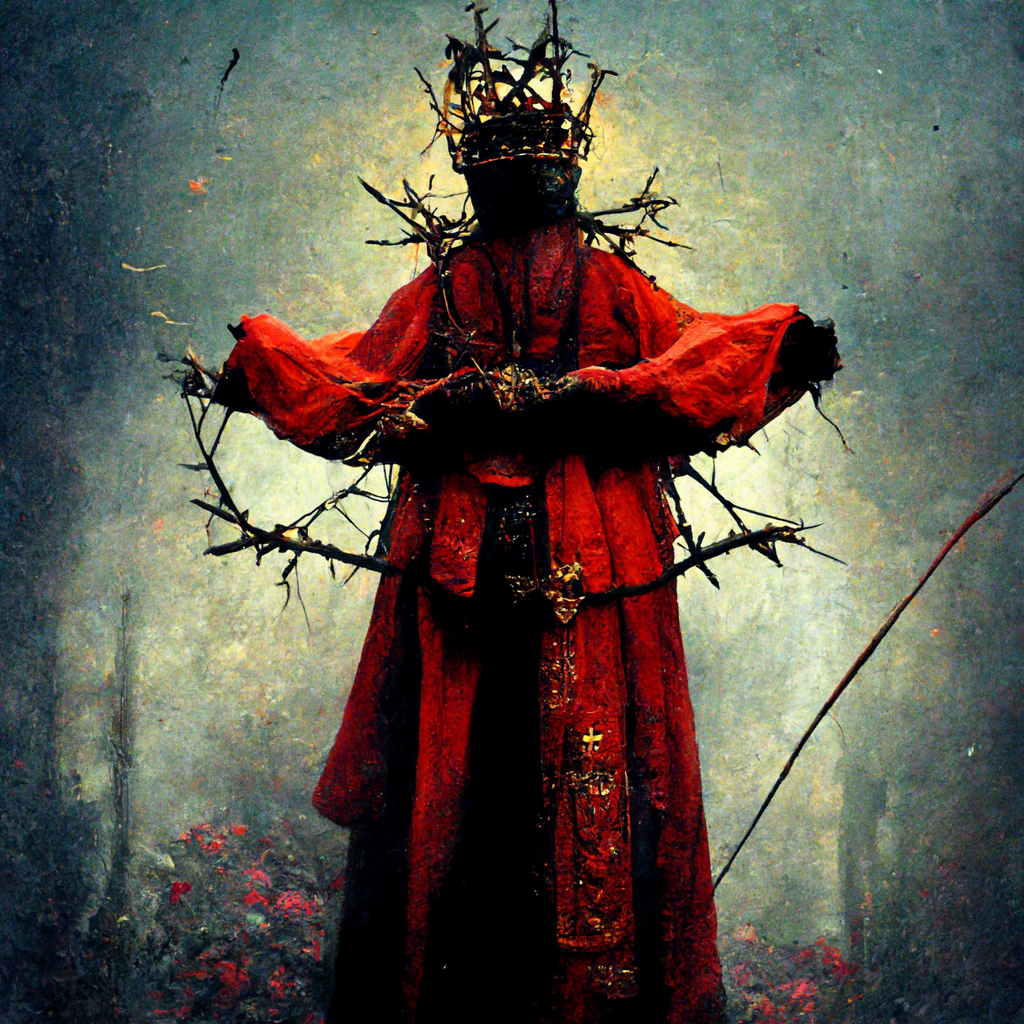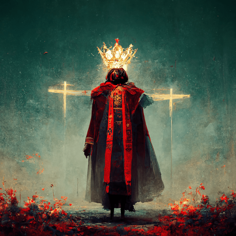 *This devotional was created out of the themes of Matthew 27:11-23 found in today’s reading at CommonPrayer.net. Below are the various AI-created pictures I typed into existence via Mid Journey to mock up artwork for today’s post.
