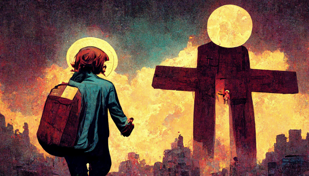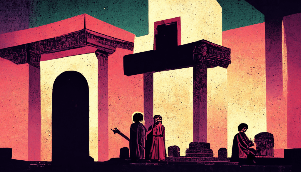 *This devotional was created out of the themes of Matthew 27:45-54 found in today’s reading at CommonPrayer.net. Check it out for greater detail. Below are the various AI-created pictures I typed into existence via Mid Journey to mock up artwork for today’s post.