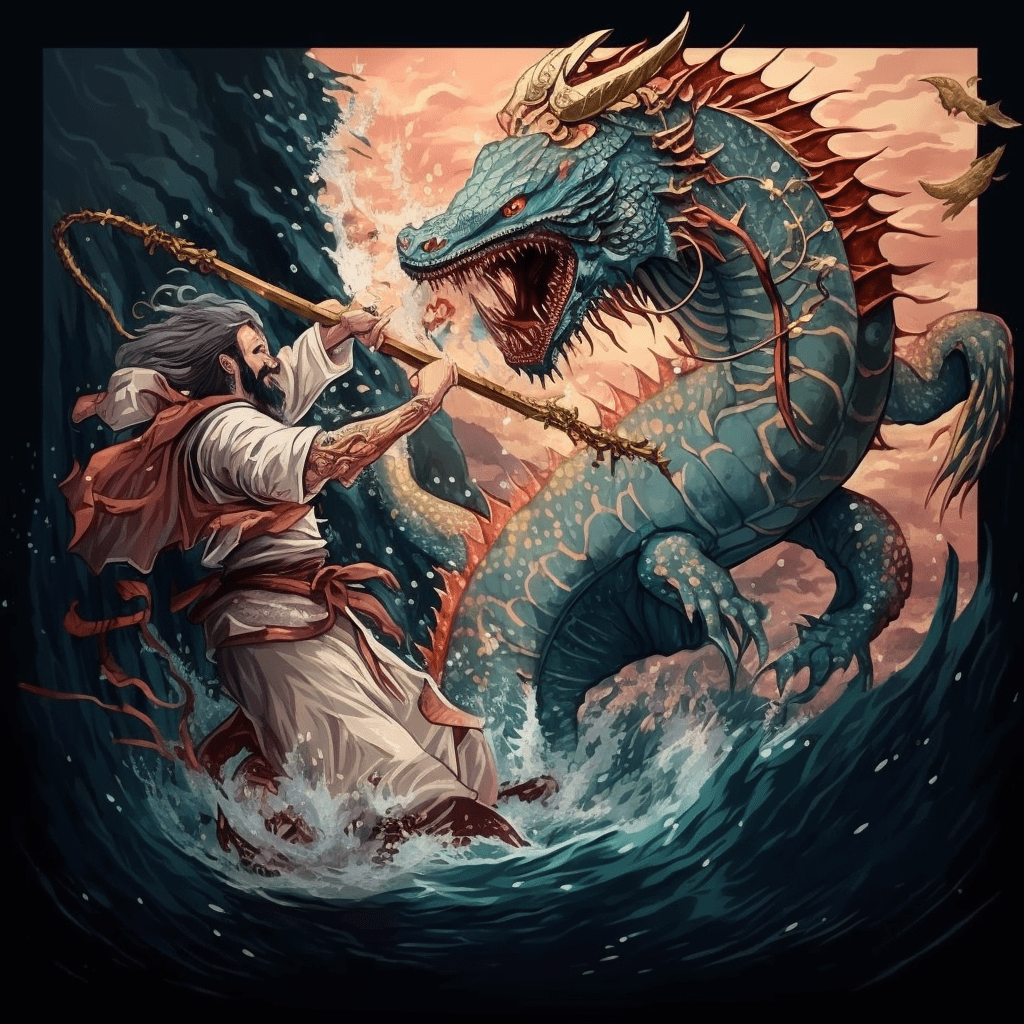 John takes all of these chaoskampf themes and weaves them into the book of Revelation. There he envisions the Old Testament’s many-headed water-chaos-monsters and earth-chaos-monsters rising up alongside the ultimate dragon-chaos-monster, Satan. John wants us to see that one day all themes and beings of chaos will reach their peak reign in society, religion, politics, and cosmology, and then God will defeat them once and for all, fulfilling the prophecy of Isaiah 27:1 where it is proclaimed that one day God will take his sword and slay Leviathan for good.